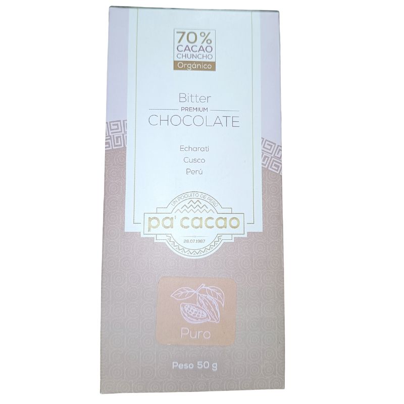 Nuestro Chocolate Bitter 70% Cacao es una experiencia para los verdaderos amantes del chocolate oscuro. Elaborado con granos de cacao cuidadosamente seleccionados, ofrece un sabor profundo, equilibrado y ligeramente afrutado que despierta los sentidos en cada bocado.